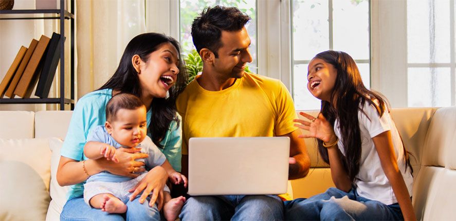 Familia, un hijo, ambos padres trabajan de forma híbrida